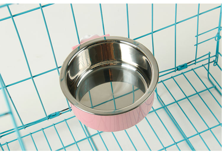 Pet Bowl Colorful Stainless Steel Removable Water Food Feeder Cage Hanging Non Spill Bowls with Bolt Holder for Dog & Cat